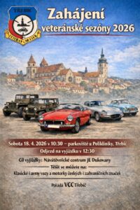 Veteran car club Třebíč pořádá ve dnech 29. – 31. 5. 2026 již 33. ročník tradiční soutěže a srazu, O zlomenou poloosu.Sraz bude na stejném